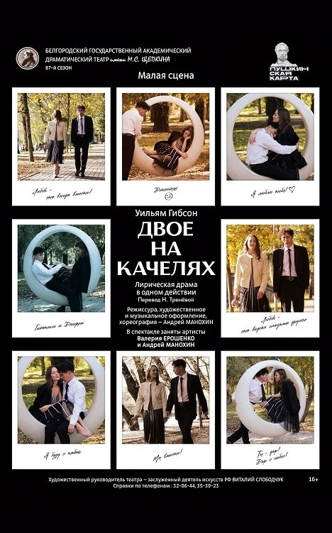 БГАДТ им. Щепкина приглашает зрителей на лирическую драму в одном действии «Двое на качелях» по легендарной пьесе Уильяма Гибсона в постановке Андрея Манохина.