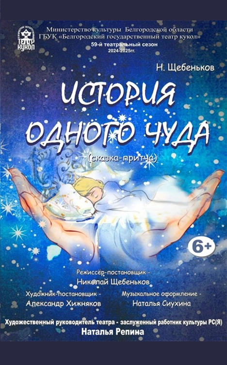 Белгородские кукольники представят историю о маленьком мальчике, который переживает непростой период в жизни, проходит длинный путь душевных переживаний и находит то единственное, что поддерживает его и помогает выжить. И это для него настоящее чудо!