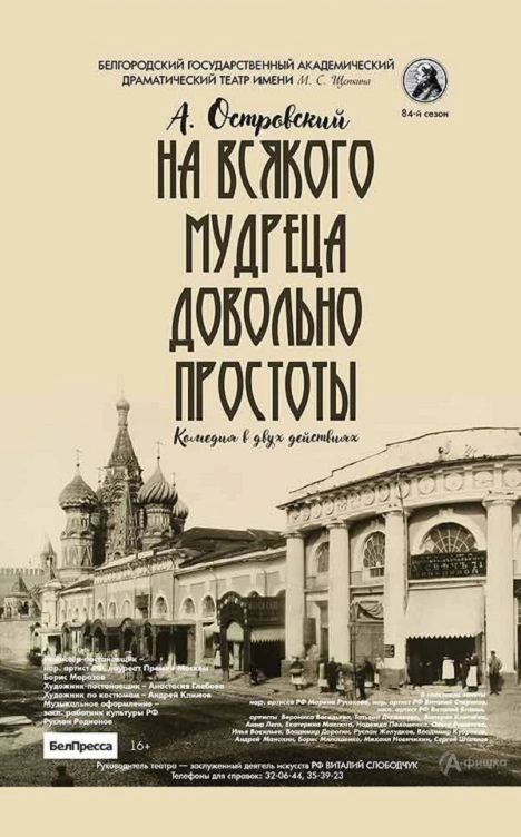 Народный артист России, главный режиссёр ЦАТРА Борис Морозов в своём восьмом белгородском спектакле вновь обращается к бессмертной драматургии Александра Николаевича Островского.