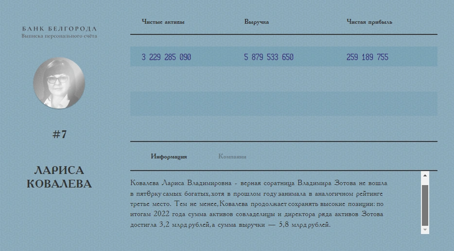 Ежегодно журналисты «Бел.Ру» составляют рейтинг из 100 самых богатых белгородцев. Некоторые имена держатся в топе и известны большинству жителей региона, а кто-то попал туда только недавно и ещё не успел обрести славу. Мы публикуем первую десятку списка, а остальных богачей вы сможете увидеть, перейдя по ссылке к полному списку.