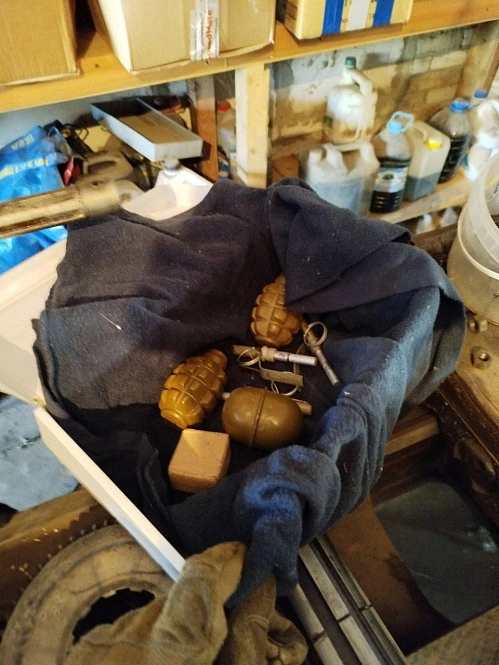 Дома у подозреваемых нашли три автомата Калашникова, шесть гранат, противопехотную осколочную мину, более 2 500 патронов и штык-ножи. По данным экспертизы, всё найденное пригодно для использования. Краснояружцы пояснили, что они не планировали использовать оружие в преступных целях.