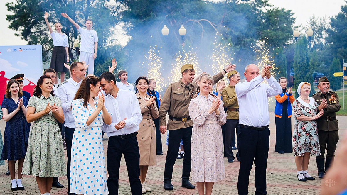 В театрализованной постановке под открытым небо с элементами танцевальной программы, приуроченной к празднованию 80-й годовщины Великой Победы, в качестве актёров, танцоров и зрителей участвовали жители Белгорода и Старого Оскола.