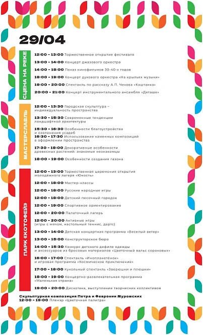 Фестиваль будет проходить на нескольких центральных площадках города с 29 апреля по 1 мая. Традиционно к мероприятию готовят новые экспонаты и прежде всего высаживают цветы. Тюльпаны стали особенностью феста. Что можно увидеть в городе в эти дни, кроме цветочной красоты, смотрите в карточках с афишей.