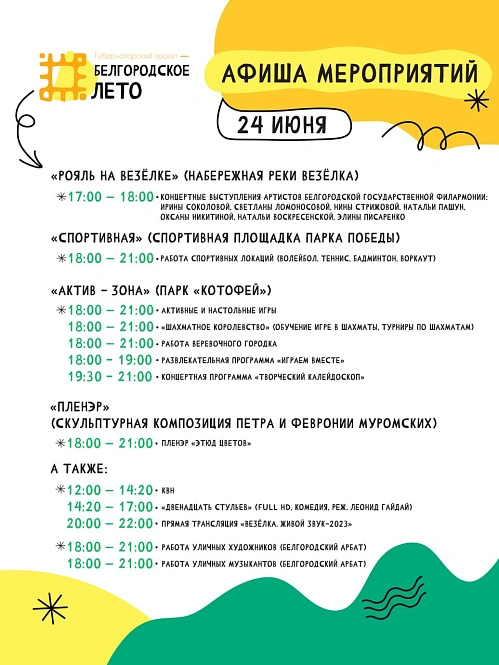 В мэрии Белгорода поделились афишей «Белгородского лета» на предстоящие выходные.