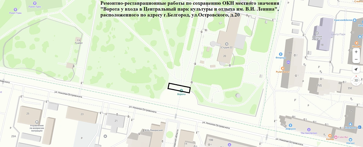 В этот раз мэрия предлагает потенциальным подрядчикам поучаствовать в аукционе на выполнение ремонтно-восстановительных работ на воротах входа в парк им. В. И. Ленина на улице Островского, 20. Ворота входят в список объектов культурного наследия местного значения.