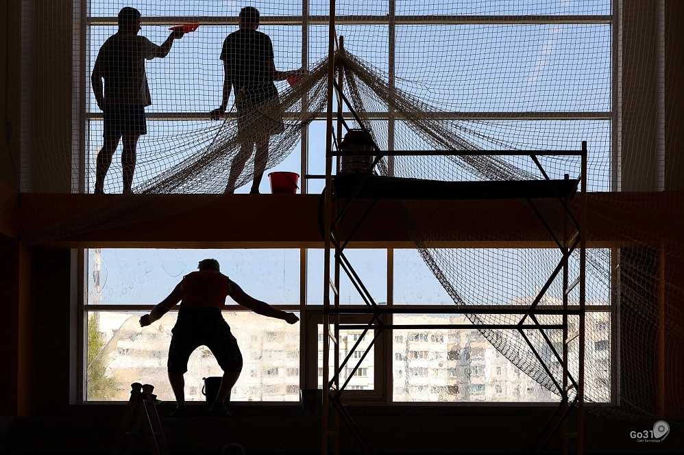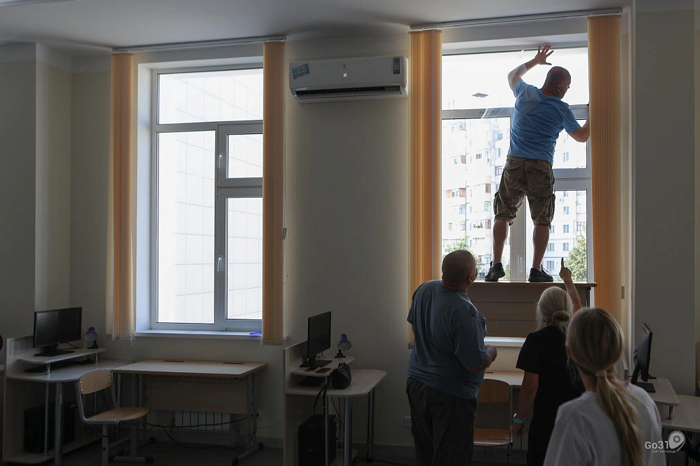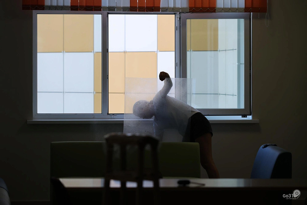 Из-за опасности обстрелов в белгородских школах оклеивают окна бронеплёнкой. Фоторепортаж