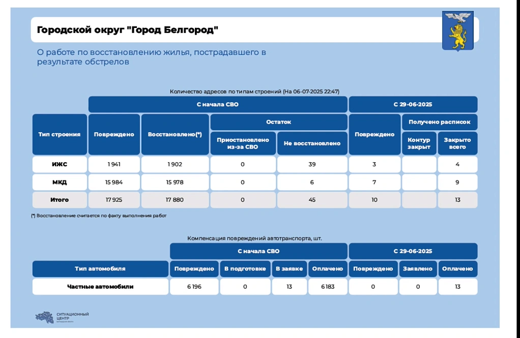 По мнению губернатора Белгородской области Вячеслава Гладкова, решение необходимо для увеличения темпов ремонта жилья.