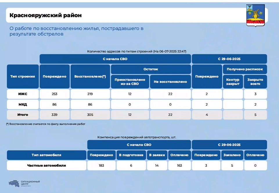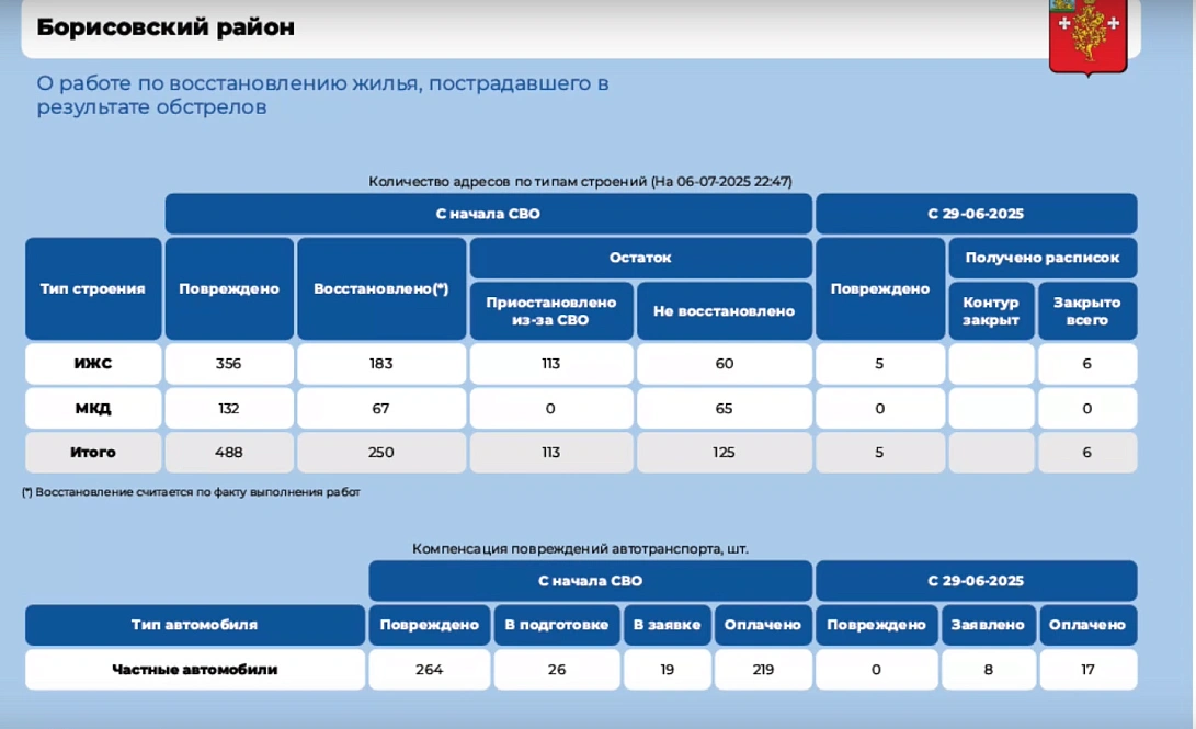 О восстановлении жилья рассказала глава муниципалитета Татьяна Круглякова. На прошлой неделе специалисты отремонтировали 30 домов. Из них 20 было повреждено новыми обстрелами.
