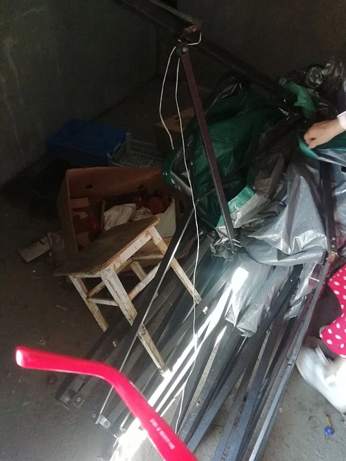 Места для людей практически не было, потому что укрытие завалено коробками и табуретками.