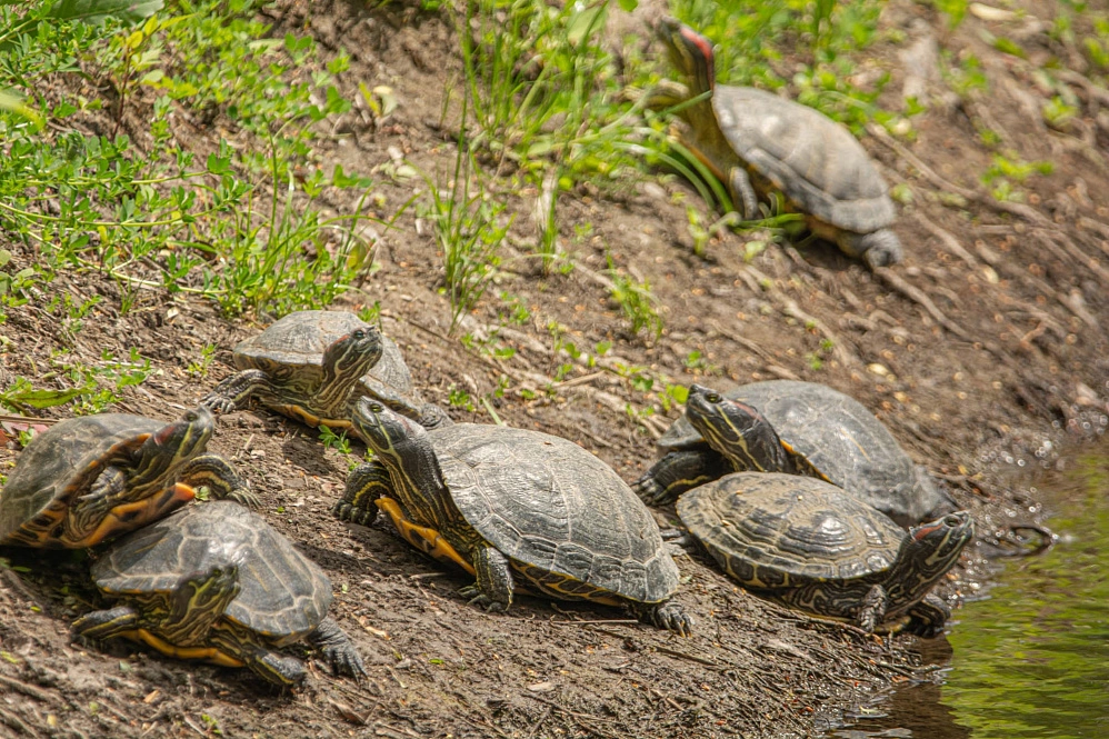 Белгородцы заметили большое скопление черепах на берегу Везёлки