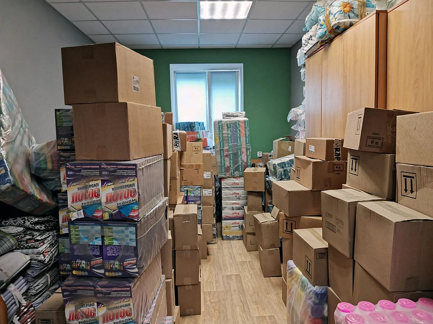 К нам поступили предметы первой необходимости, средства личной гигиены. И, конечно же, предметы для обустройства быта. Потому что люди приезжают как семьями, так и одинокие. И нам надо создать комфортные условия для всех,