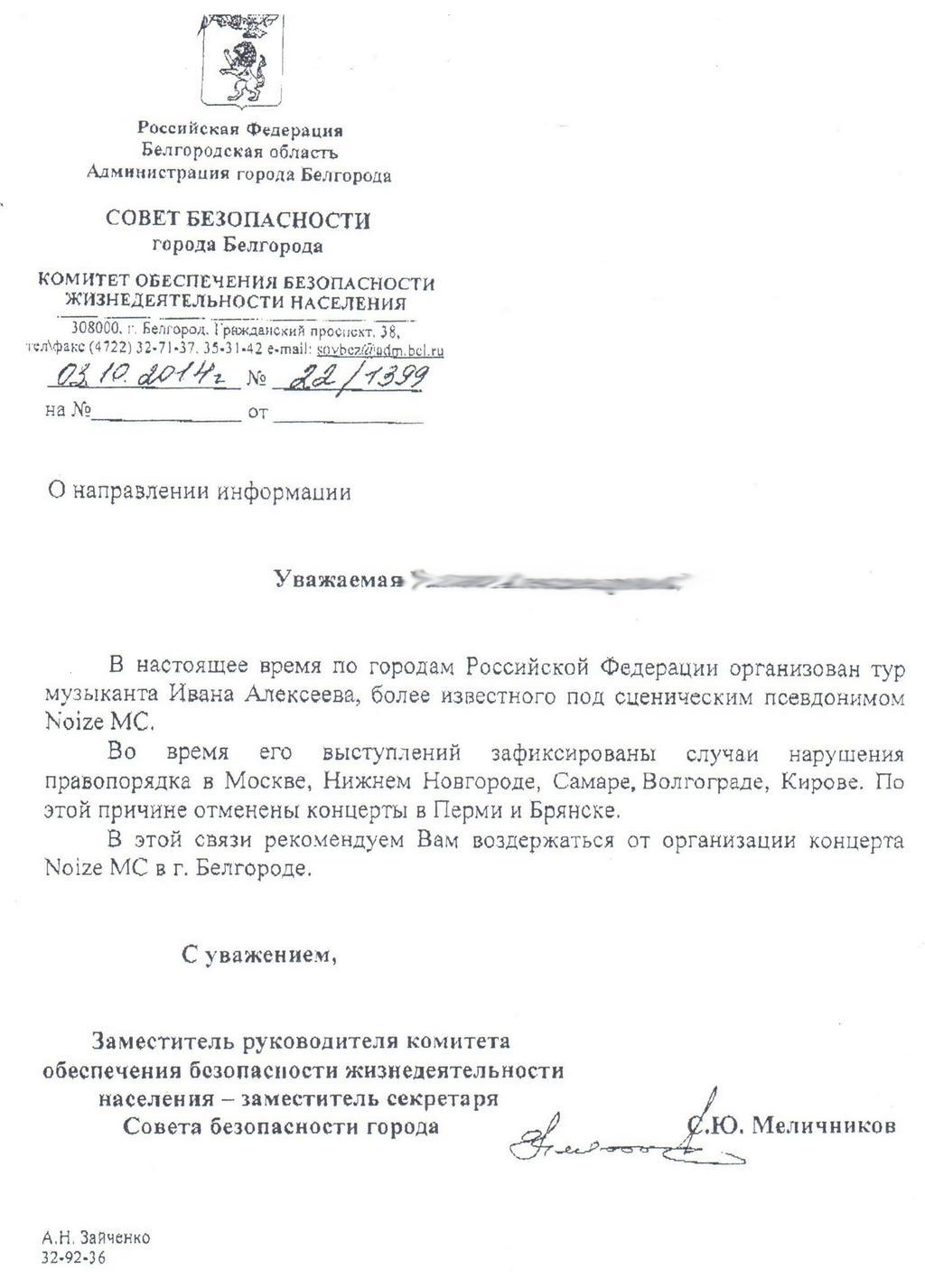 И ещё один маленький штрих: на следующий день после выступления в Белгороде Noize MC дал концерт в Брянске. В том самом Брянске, в котором, по информации Совета безопасности Белгорода концерт группы отменили.