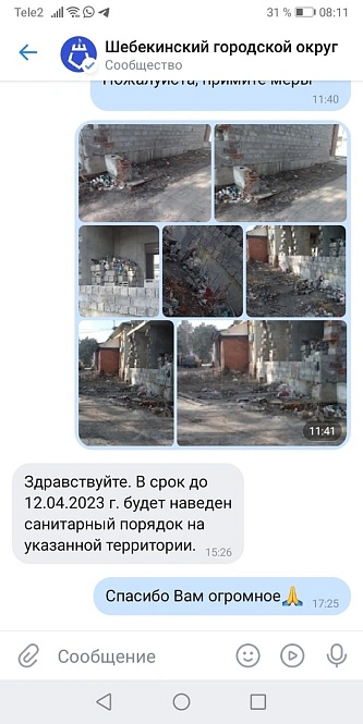 Также обратившаяся опубликовала скриншот переписки с чиновниками администрацией Шебекина, где они обещают навести порядок в срок до 12 апреля. Однако обещание выполнено не было, поэтому белгородка попросила обратить внимание на проблему компетентные органы.