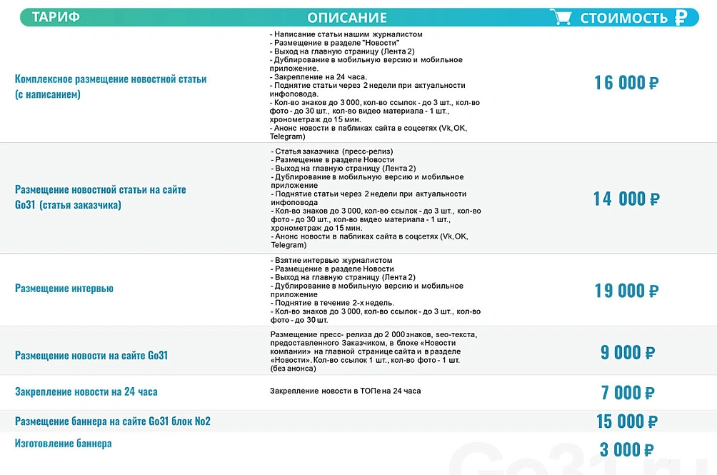 Go31 публикует прайс-лист на услуги по размещению агитационных материалов к выборам 17 марта 2024 года