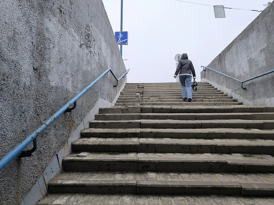 После зимних температурных качелей разрушения на лестницах и выбоины в полу перехода стали особенно заметными. Подробности — на фото.