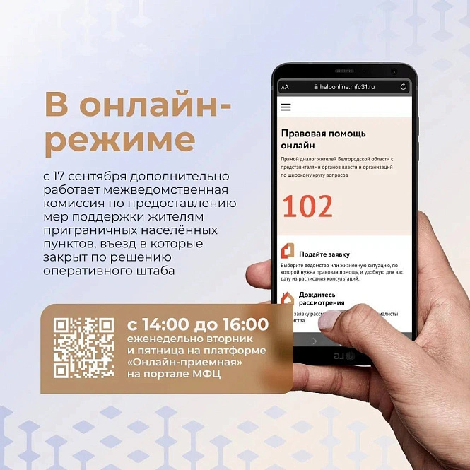 Консультация будет доступна по вторникам и пятницам с 14 до 16 часов на платформе «Онлайн-приёмная» портала МФЦ.