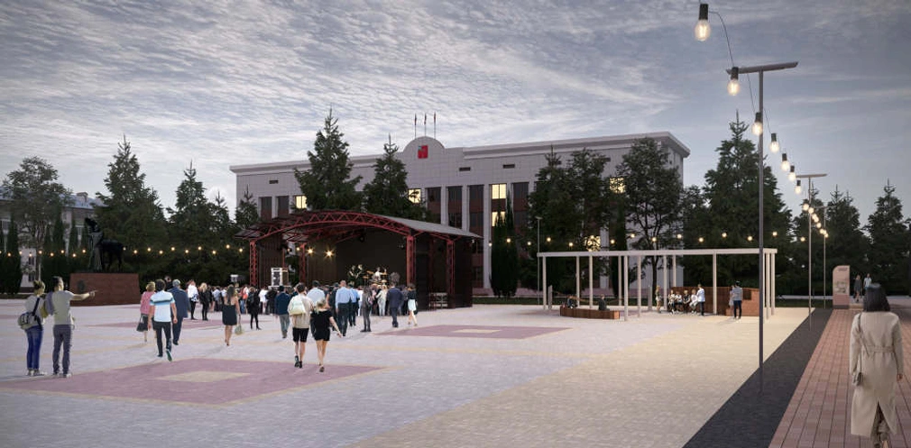 Площадь будет разделена на разные функциональные зоны: прогулочная, молодёжная, детская, рекреационная, ландшафтная, культурно-выставочная, с навесами и прочие. Также этот масштабный проект будет включать в себя: