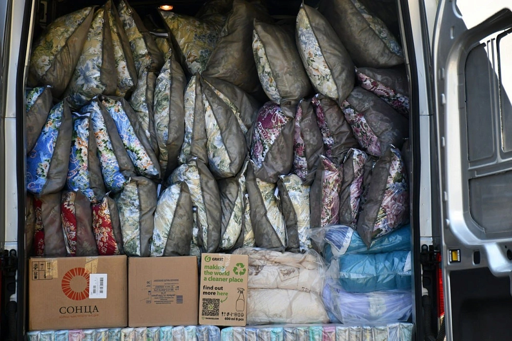 Всего доставлено порядка тонны груза. Это текстиль, постельные принадлежности, предметы личной гигиены и для организации быта.