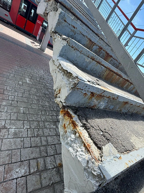 Облупившаяся отделка, трещины на бетонном покрытии и ржавчина на металлических деталях – это и другие проблемы, бросающие в глаза, заставляют многих пассажиров отказать от прохода по мосту и пользоваться наземными переходами.