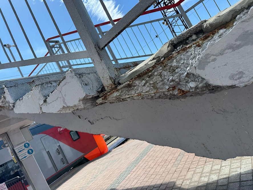 На протяжении нескольких лет поступают жалобы пассажиров на состояние пешеходного моста на железнодорожном вокзале областного центра. Вчера на его состояние обратил внимание депутат горсовета, координатор регионального отделения ЛДПР Евгений Дремов.