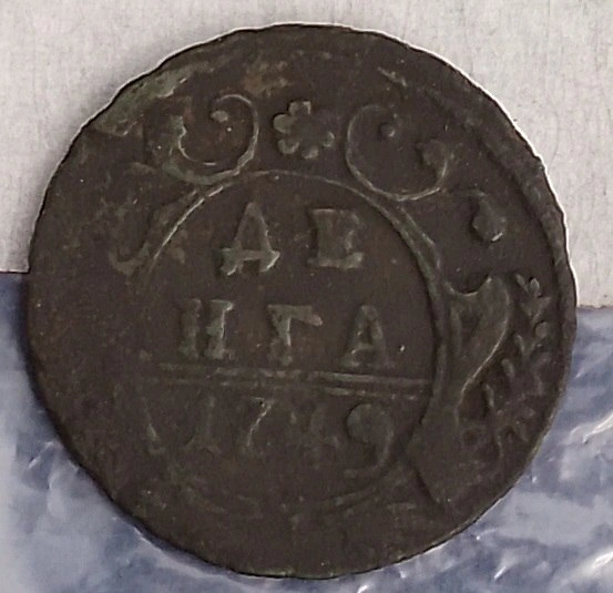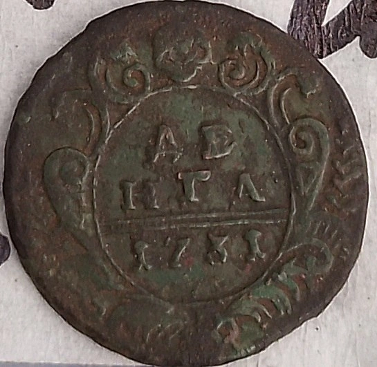 На том же месте обнаружили денга – медную монету, которую массово выпускали при правлении Анны Иоанновны. Таких монет было четыре: 1731-го, 1738-го, 1746-го и 1749 годов чеканки.