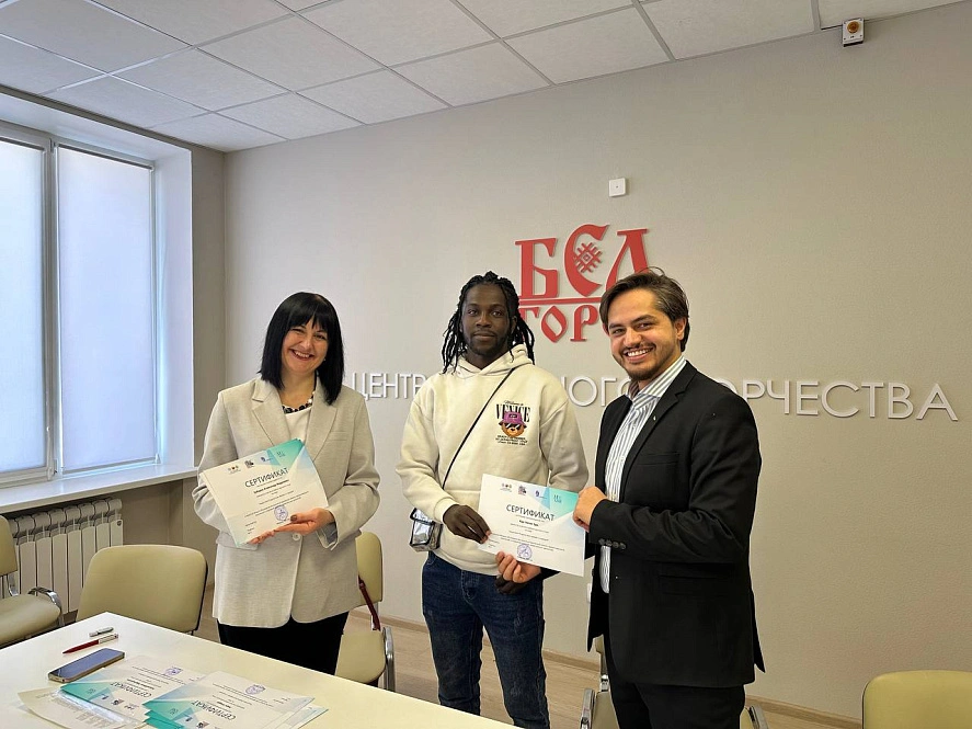 В завершение мероприятия участники создали плакат с объединяющим слоганом «Мы вместе», написав его на своих родных языках: русском, арабском, французском, креольском, китайском.