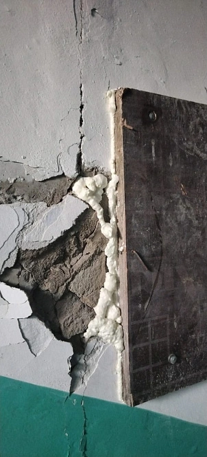 Жительница города Шебекино, который сейчас восстанавливают после продолжительных обстрелов ВСУ, опубликовала фото, на которых видно, что трещины в стенах заполняют монтажной пеной.