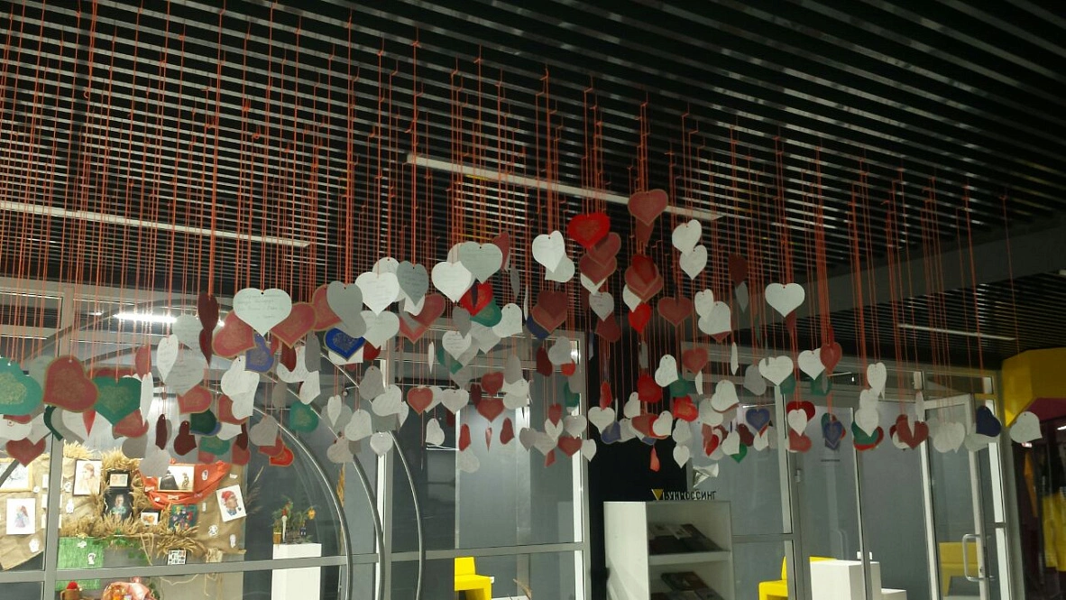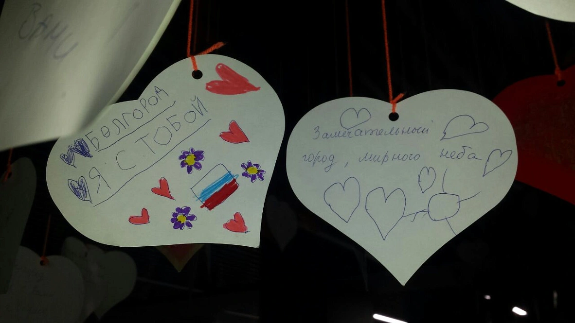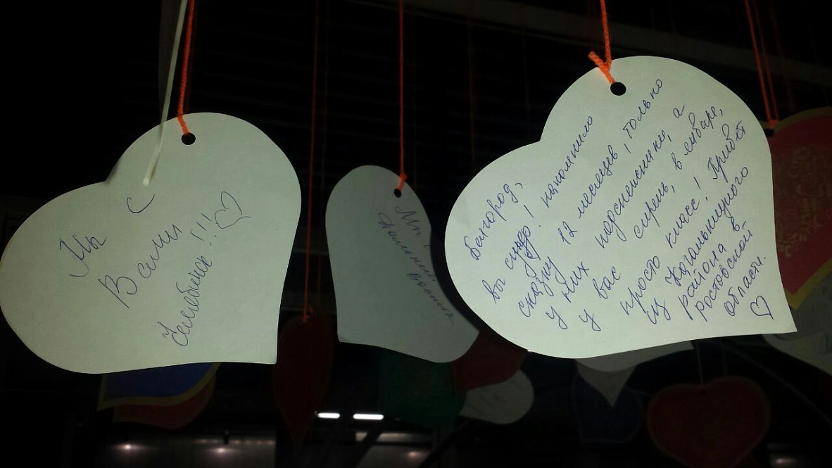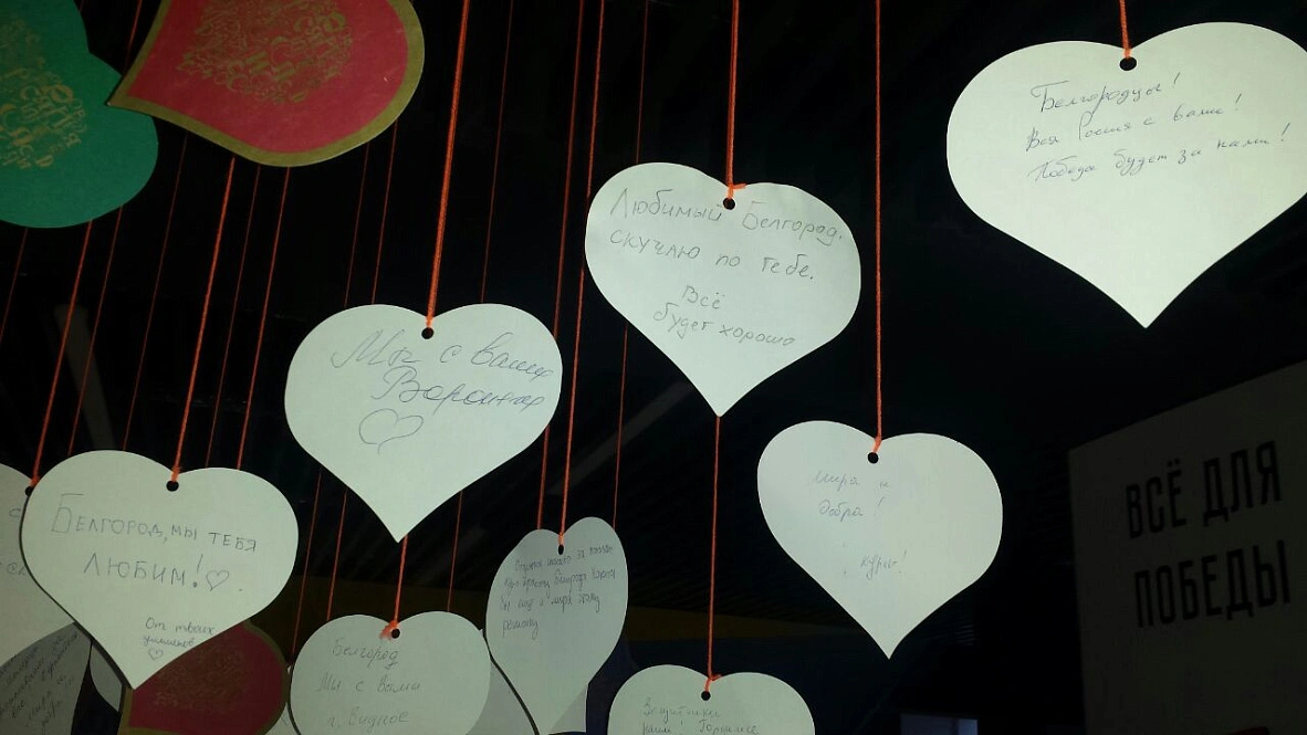 В холле Центра молодёжных инициатив в Белгороде повесили бумажные сердечки с пожеланиями региону. Писали их на выставке на ВДНХ. Авторы – жители разных уголков России, которые переживают за приграничную Белгородскую область, оказавшуюся под ракетными ударами в канун Нового года.