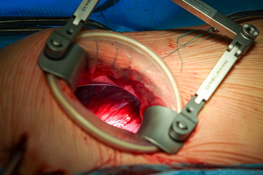 Выясняется, что митральный клапан несостоятелен. Створки не выполняют свою функцию. Необходимо протезирование. Можно сделать пластику, но она будет недолговечной. Чтобы избавить молодого мужчину от повторного вмешательства, врачи решили выполнить сразу протезирование механическим клапаном.
