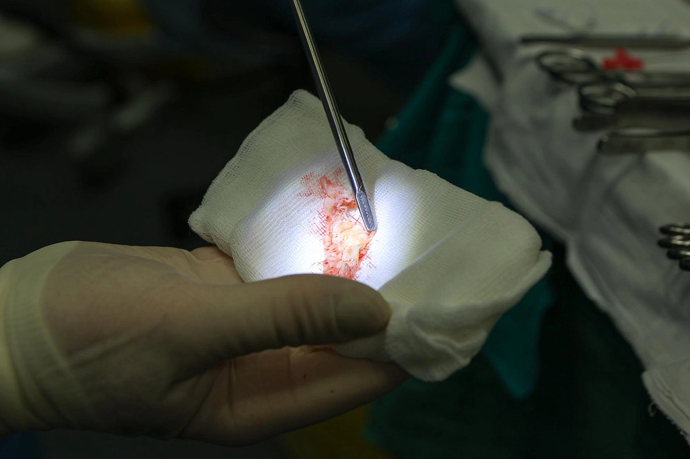 Мы стоим в небольшой комнате перед операционной, в которой идут все приготовления. Тот, кто считает, что операция проводится в академической тишине и там находятся, кроме больного, максимум хирург и ассистирующая ему медсестра, был бы сильно разочарован. В операционной врачей столько, что при ярком свете ламп она больше напоминает театр. Правда, главный герой – спит безмятежным сном на столе. Несколько человек готовят его к будущей операции – протирают кожу дезинфицирующим раствором, закрывают тело стерильной тканью, прорезая в ней небольшие отверстия. Голова больного остаётся за ширмой, там за его состоянием наблюдают врачи-анестезиологи, у них под рукой шприцы с сильнодействующими препаратами на всякий случай и монитор, который отслеживает состояние пациента. Напротив –стол, на котором лежат десятки, если не сотни блестящих инструментов.