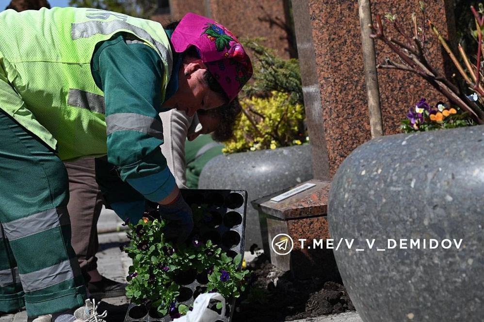 Для полива зелёных зон использовали шесть тысяч кубометров воды. Параллельно идёт чистка ливнёвок, ямочный ремонт, нанесение разметки, посадка цветов и обработка от клещей.