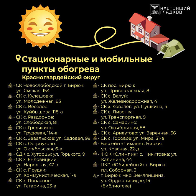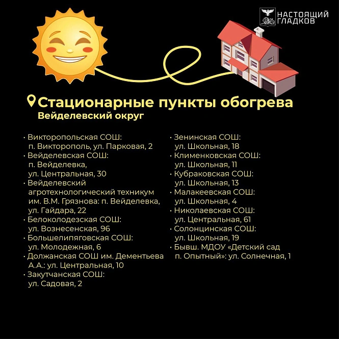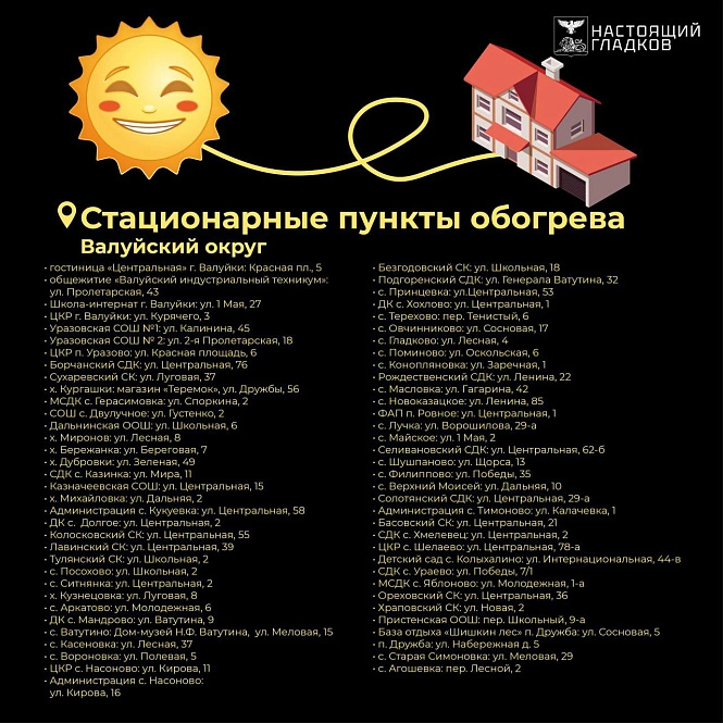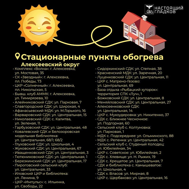 Наибольшее количество пунктов развернули в образовательных, спортивных и культурных учреждениях. Например, в Алексеевском округе для этого используют около 40 объектов, в Валуйском — почти 70, а в Корочанском — более 40. В Волоконовском, Грайворонском, Губкинском и Красненском округах работают от 20 до 30 таких точек. В Борисовском и Вейделевском округах под пункты обогрева отвели 10-15 школ и домов культуры, а в Ивнянском — 15 зданий местных администраций.