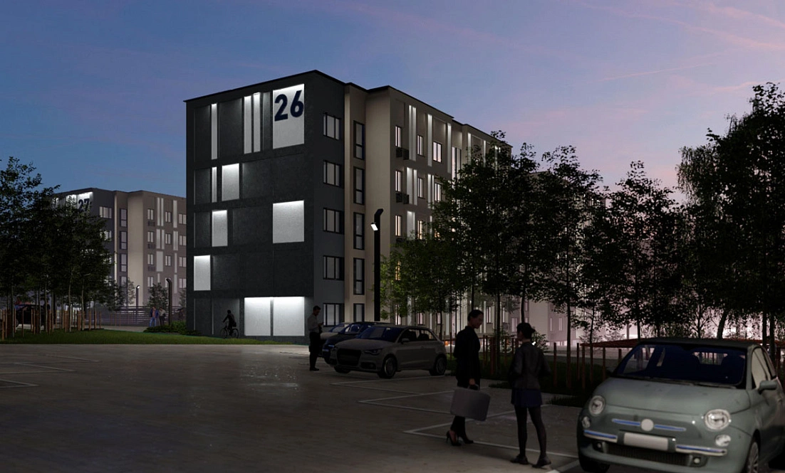 Архитектурное решение объединило в себе традиции и новые тренды. Благодаря необычной геометрии фасадов со стильной подсветкой, дома заметно выделяются среди городской застройки эстетикой и атмосферой уюта.
