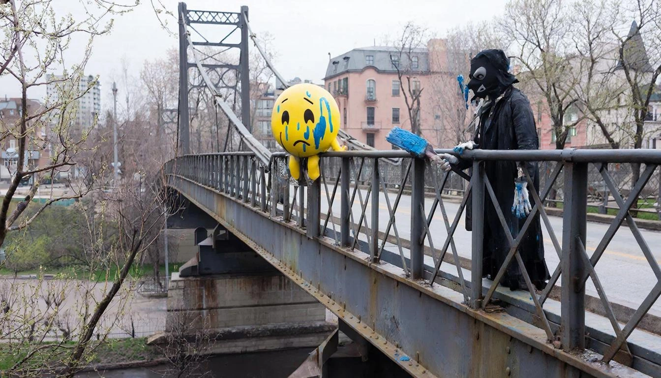 Неизвестные измазали краской смайлики на мосту в Белгороде