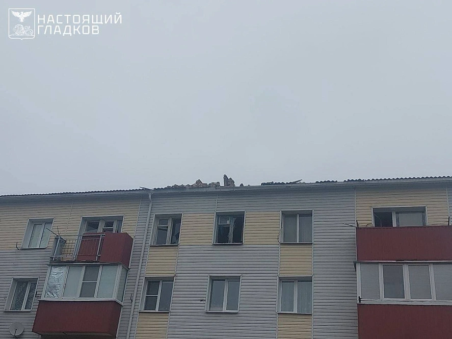 В Ясных Зорях Белгородского района дрон ударил по многоквартирному дому. Взрывом пробило крышу, повредило фасад и остекление здания.