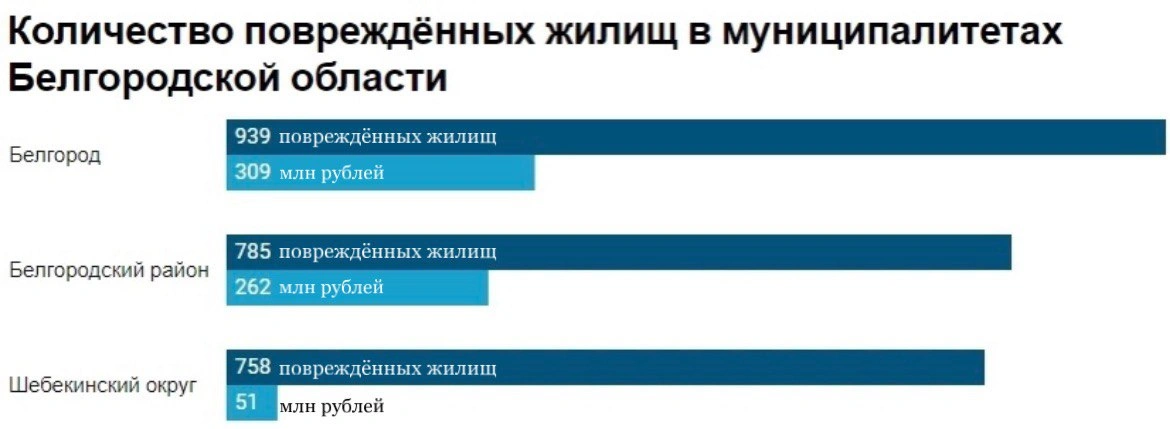 В результате страдает жилищная, социальная, коммунальная инфраструктура, объекты промышленности и торговли, находящиеся на территориях приграничных муниципальных образований, а также транспортные средства граждан,