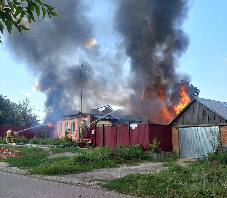 В селе Новостроевка-Первая дроном атакован частный дом. Пожарными расчётами ликвидированы очаги возгорания в доме, гараже и сарае.
