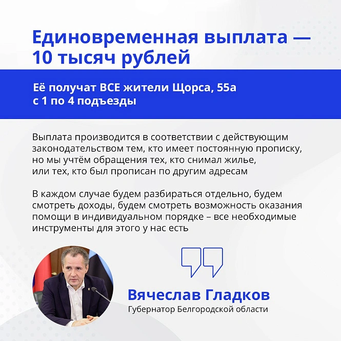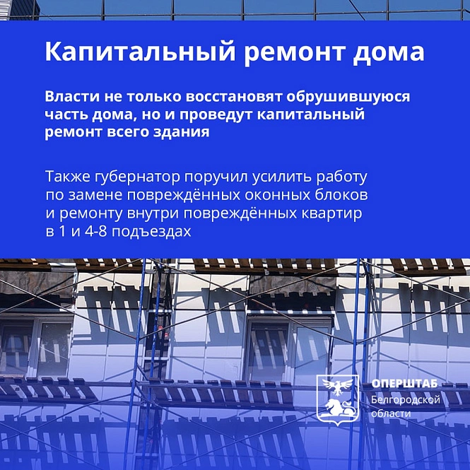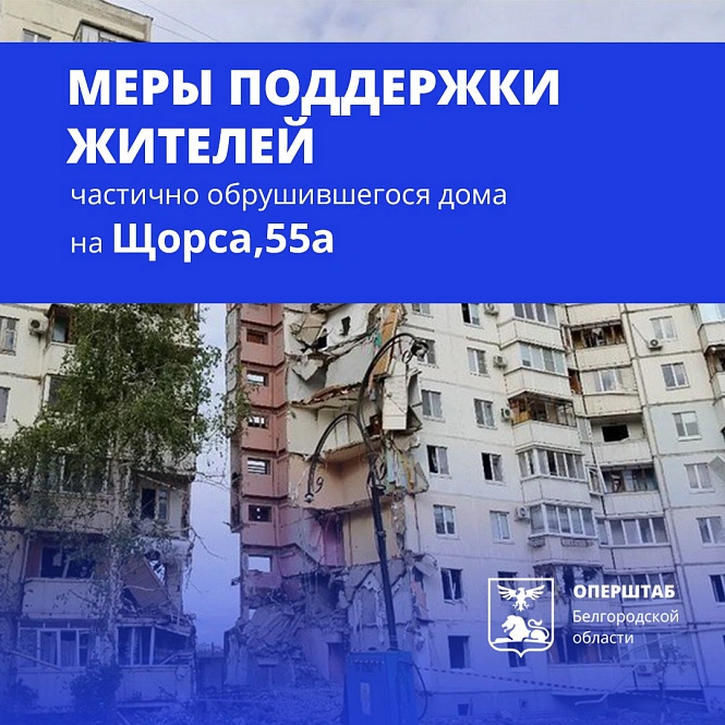 Какую помощь получат жильцы пострадавшего от обстрела дома на Щорса в Белгороде. Карточки