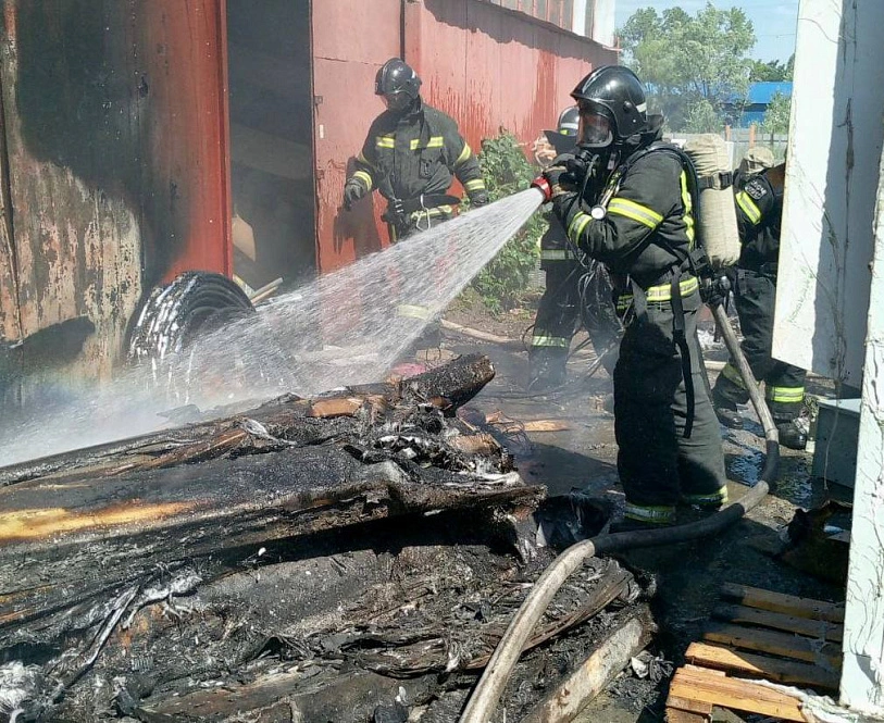 На окраине города загорелся склад, а большое количество дыма образовалось из-за горения аккумуляторов и кабелей. Спасатели зафиксировали возгорание на площади в 25 квадратных метров.