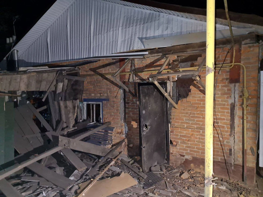 Ночью под обстрел попало село Муром. Пострадавших нет. Снаряд ствольной артиллерии прилетел во двор частного жилого домовладения, в результате чего посечены фасад и кровля, выбиты окна в доме, хозпостройка разрушена полностью. Подворовой обход продолжается,