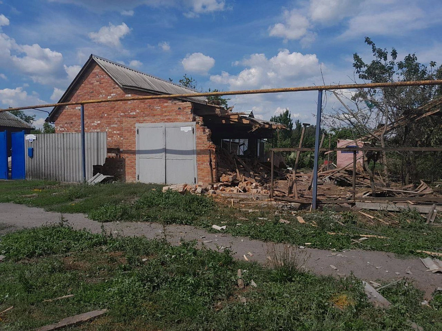 Один из реактивных снарядов попал прямо в частный дом, сообщает оперативный штаб Белгородской области. Постройка полностью сгорела, разрушен и гараж. Повреждения есть в восьми частных домах, также осколки посекли две легковушки и линии газо- и электроснабжения.