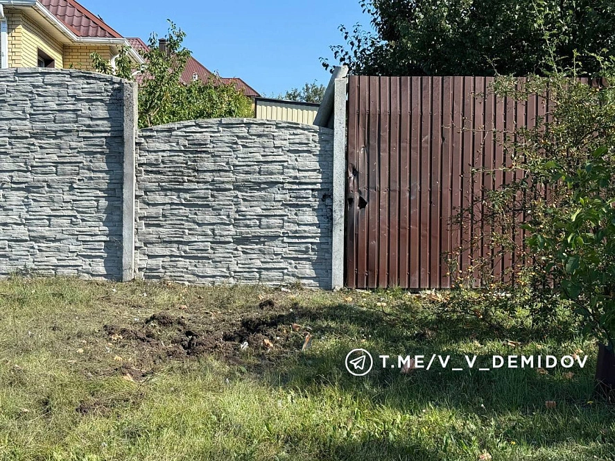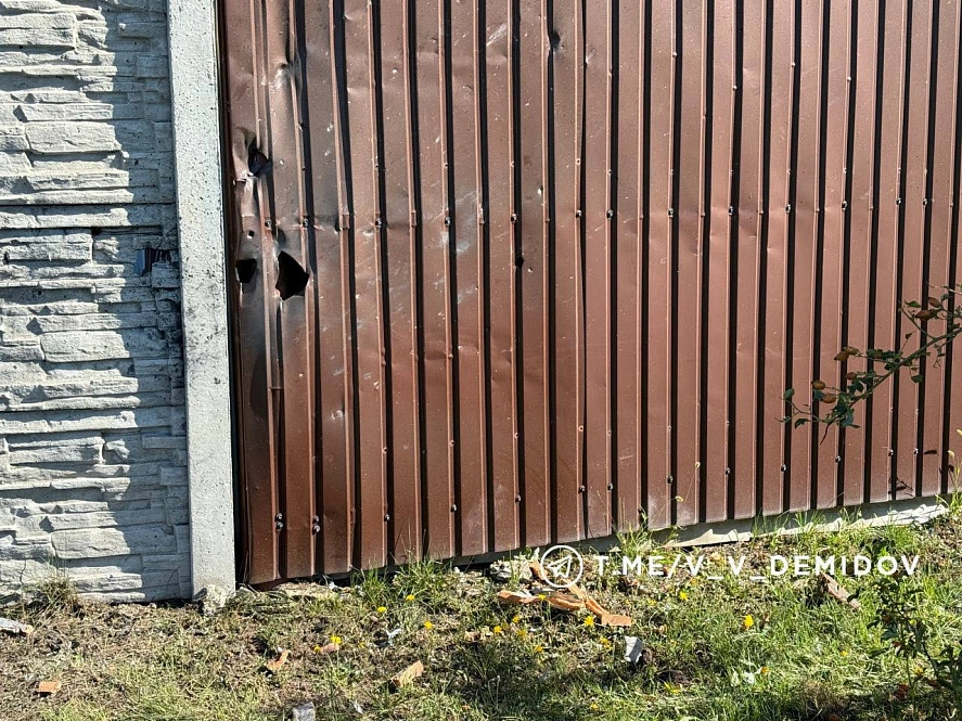 Досталось и частному сектору. Один из дронов упал у ворот жилого дома и сдетонировал. Взрыв повредил заборы и калитку.