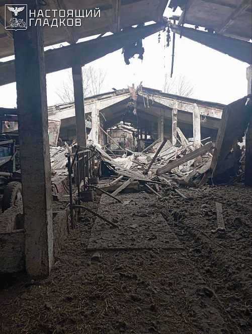 В Надежевке Краснояружского района серьёзные повреждения получило фермерское хозяйство. Разрушен ангар, повреждены сооружения неподалёку и два трактора.