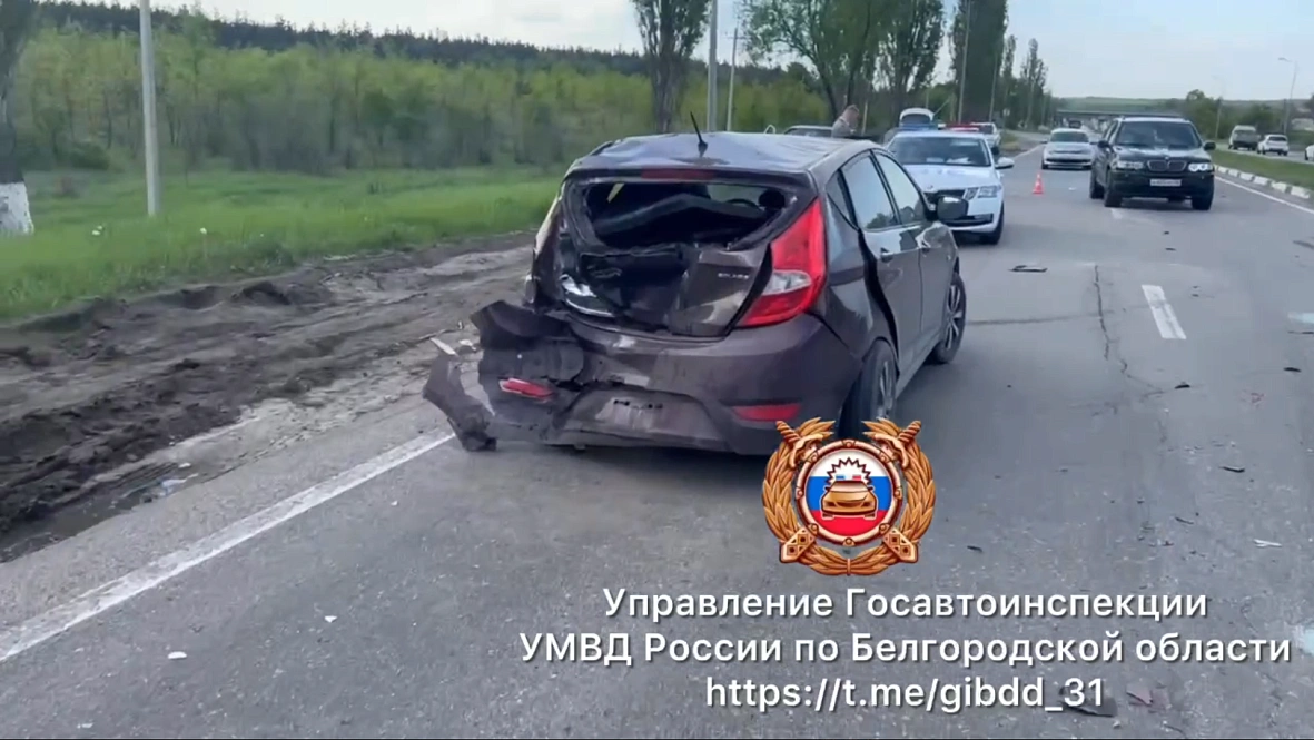 Авария с тремя автомобилями произошла днём 23 мая в Белгородской области, травмы получили три женщины.