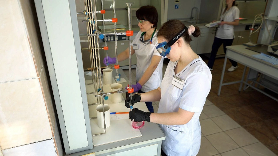 В финале конкурса встретились 9 сотрудниц с лучшим результатом по теории. На практическом этапе им нужно было определить концентрацию соляной кислоты по буре. Конкурсанты подготовили растворы соляной кислоты и определили их концентрации методом титрования – прием химанализа, который предполагает постепенное прибавление раствора одного вещества к раствору другого для расчета его концентрации.