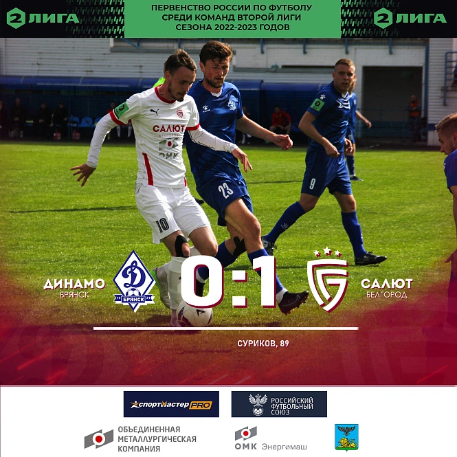 «Динамо-Брянск» – «Салют Белгород» 0:1. Гол: Суриков, 89