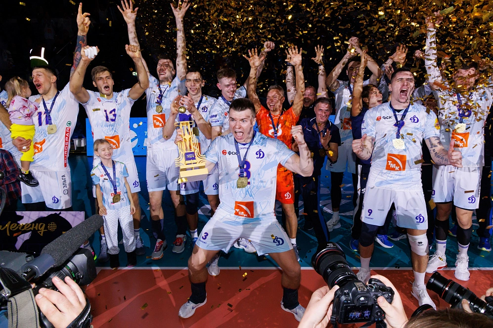 Ну а чуть позже на столичной улице Василисы Кожиной грянула если не сенсация, то значительная неожиданность. «Динамо» воспользовалось-таки преимуществом пристрелянного подачами родного зала и при поддержке своей публики забрало у фаворита «Зенита» Кубок легенд, золотые медали и самый крупный денежный приз. Местный доигровщик Богдан (это фамилия) признан MVP турнира, хотя в финале он набрал 15 очков, а его партнёр - диагональный Сапожков – 23. Поздравим москвичей с прерыванием гегемонии Казани на призы и абстрактно погрустим по поводу традиции гласных и негласных аукционов по «одомашниванию» финалов.