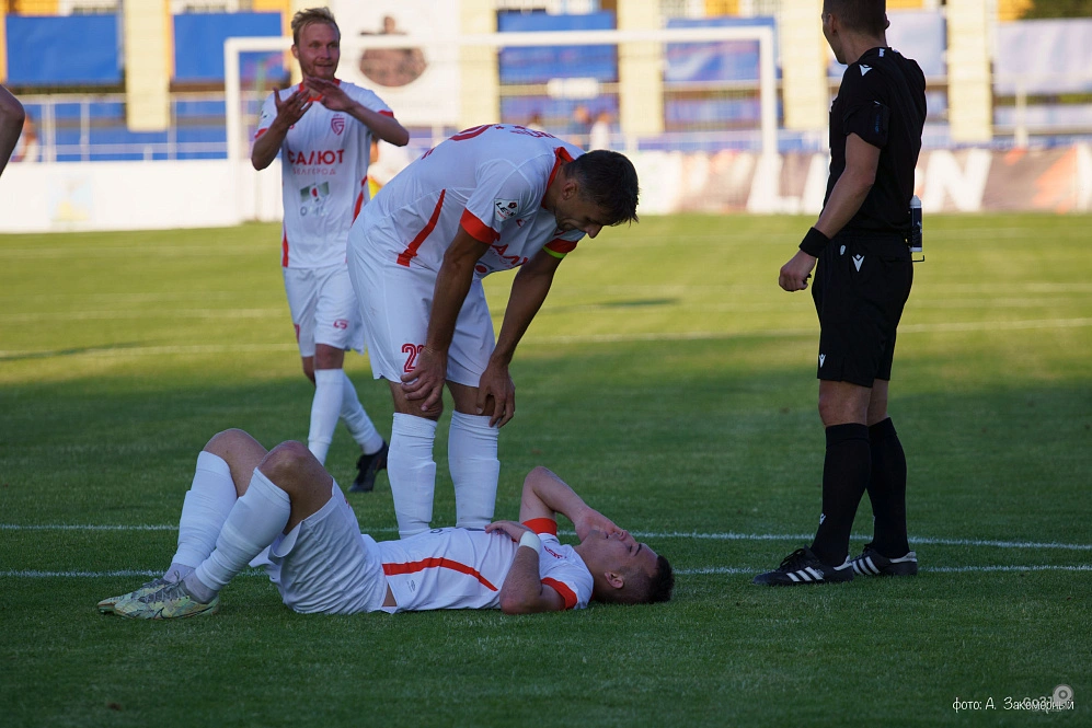 …Говорят, главный тренер ивановцев Игорь Колыванов перед визитом в Белгород возил свою команду в Москву потренироваться на травяном поле, ибо они привыкли к искусственной «поляне». Не помогло. Вернее, помогло наполовину: первый тайм гости выстояли, а их вратарь и защитники спасли несколько раз ворота во время атак осмелевших и почувствовавших своё преимущество хозяев.