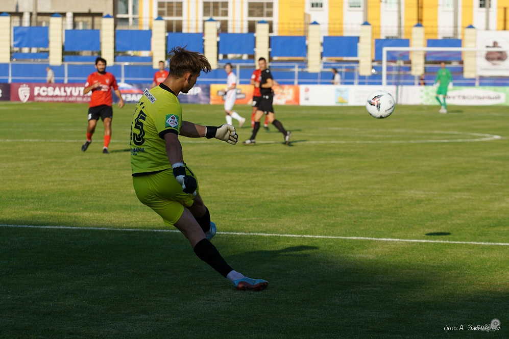 Ну а в середине тайма после блестящей атаки по левому флангу счёт сделал крупным тот же Максимчук. Приятно, что салютовцы не отошли назад и не стали засушивать игру и беречь крупную победу. Вскоре зазвенела правая штанга гостевых ворот, а на 77-й минуте Максимчук во второй раз доказал своё умение играть головой. Вот так «только что запасной» завоевал себе место в основе.