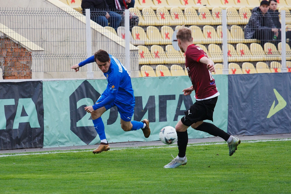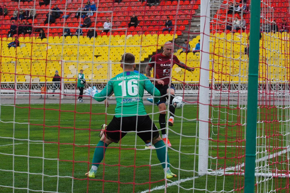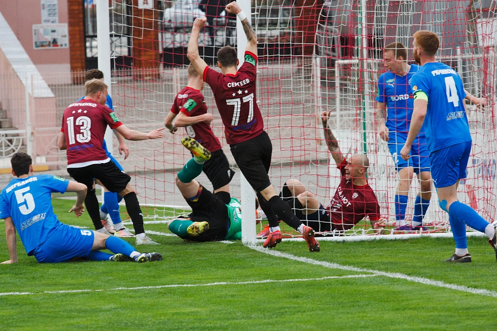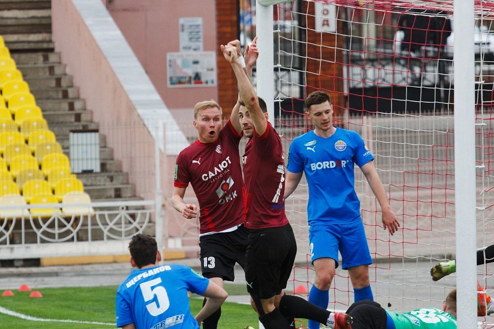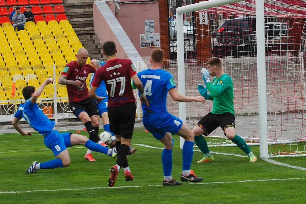 Вообще-то гостей хватило на относительно равную игру разве что в первые полчаса. На их исходе мощная силовая атака хозяев с несколькими добиваниями кончилась тем, что мяч был практически внесён в сетку ворот вместе с руками вратаря и ногами защитников. Последнее голевое касание нанёс защитник Александр Крикуненко.